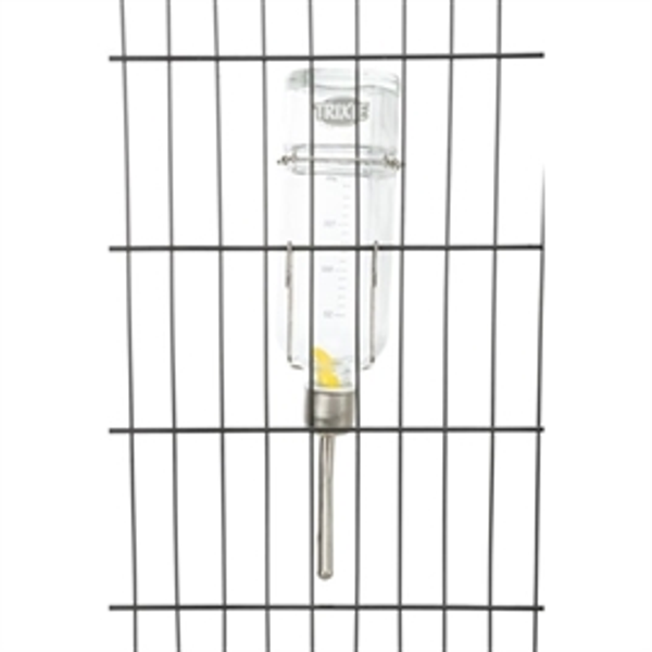 Deze luxe, glazen drinkfles is speciaal bedoeld voor kleinere knaagdieren zoals hamsters en gerbils. Doordat het drinktuitje gemaakt is van metaal kan deze niet kapot worden gebeten. In de fles zit een Œfloater zodat je altijd kan zien hoeveel water er nog in de fles zit. Tevens is deze fles voorzien van kogel tegen het lekken.