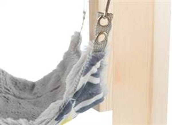 De Trixie Schuilplaats Met Hangmat Sunny Assorti / Grijs van 28 x 28 x 24 cm is een schuilhuisje voor knaagdieren als cavia's met daarin een hangmat. Jouw cavia kan dit huisje zowel als schuilplek of uitkijkplaats gebruiken! Het huisje is gemaakt van onbehandeld hout en eenvoudig te monteren. In het huisje is een hangmat geplaatst, die je eenvoudig in hoogte kunt verstellen voor de verschillende oogjes. De hangmat is gemaakt van zacht pluche en wasbaar met de hand.