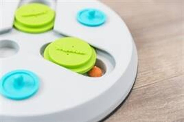 Het Trixie Slide & Fun Board Kunststof 23X23 cm is een intelligentiespel voor knaagdieren, een bordspel met verschillende schuifjes en deksels om beloningen in te verstoppen. Daag jouw knager uit met dit Slide & Fun Board van Trixie! Dit intelligentiespel zorgt voor mentale uitdaging door jouw dier de diverse deksels en kommetjes te laten openen op zoek naar zijn beloning. Het zoeken naar voedsel is een natuurlijke bezigheid voor jouw dier, waarmee je verveling tegengaat en zijn instincten aanspreekt. Dit bordspel is slipvast door de rubberen ring en komt met een handleiding voor training. Gemaakt van kunststof en geschikt voor in de vaatwasser.