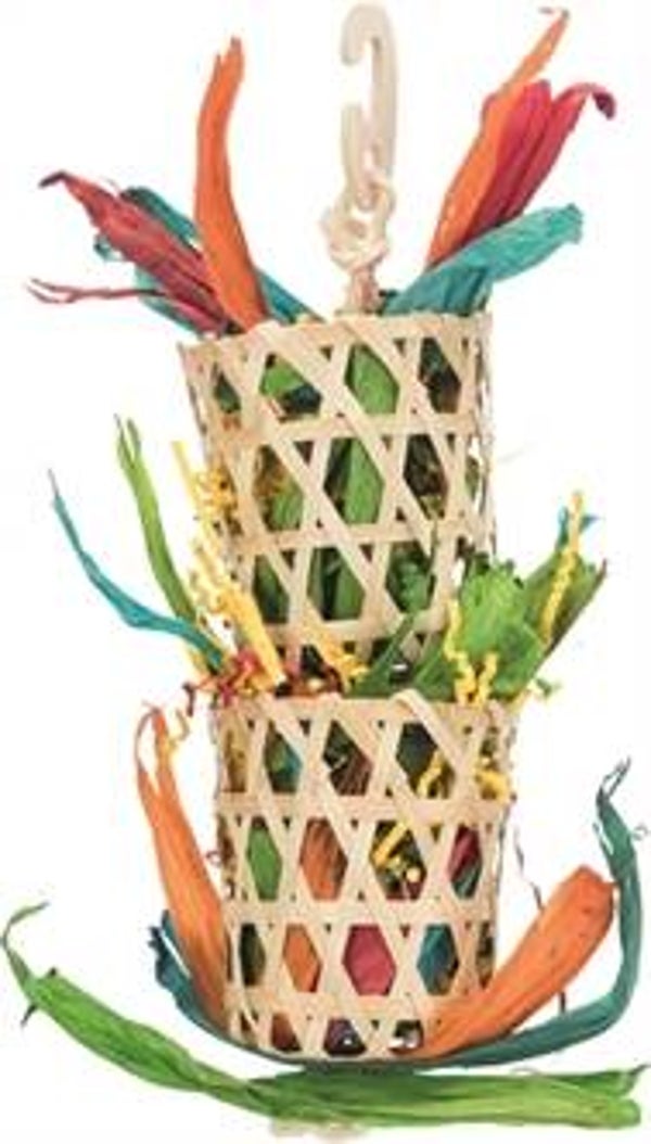 Het Trixie Vogel Natuurspeelgoed Aan Sisalkoord Palmblad / Maïslies 35 cm is kleurig vogelspeelgoed met natuurlijke materialen, voor parkieten, agapornissen en papegaaien. Voldoe aan de natuurlijke sloop- en speelbehoefte van jouw vogels met dit kleurige speeltje! Dit speelgoed is gemaakt uit diverse natuurlijke materialen, zoal palmblad, maïslies en papier. Jouw parkiet, valkparkiet, agapornis of papegaai kan het speeltje naar hartenlust uit elkaar trekken en aan de materialen knagen en hoeft zich niet meer te vervelen. In leuke kleurtjes die gelijk de kooi opvrolijken.