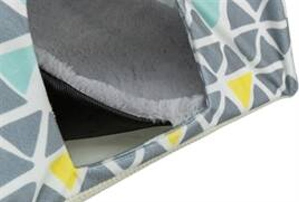 De Trixie Wigwam Voor Hamsters En Degoes Sunny 37X35X37 cm is een slaapplekje voor hamsters en degoes om neer te zetten in de kooi of ren. Dit vrolijke holletje zal de favoriete slaapplek zijn van jouw hamster of degoe. Ze de wigwam op een fijn plekje waar jouw diertje graag slaapt. Het lekkere kussen beschermt het beestje tegen kou van de grond. De vulling van foam maakt dat het kussen comfortabel ligt en de hoes kan gewassen worden op 40 graden Celsius. De onderkant is voorzien van een antislip-laag van rubber. Het vrolijke printje maakt het helemaal af.