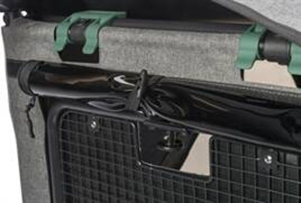 De Trixie Fietskar Grijs/Salie 62X80X92 cm is een hondenkar voor achter de fiets, gemaakt van water afstotend polyester, metaal, rubber en plastic. Neem jouw hond mee op een fietstocht met deze mooie kar! De kar is voorzien van een ophanging voor meer comfort en bevat een kussen met memory foam.