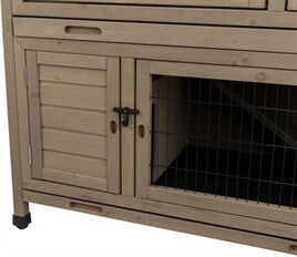 Het Trixie Natura Knaagdierhok Twee Verdiepingen Grijsgroen van 116 x 65 x 111 cm is een ruim, praktisch knaagdierhok met twee te scheiden verdiepingen, schuilhokken en uitschuiflades. Gun jouw konijnen de ruimte en jezelf gemak! Dit handige konijenhok van Trixie heeft ruime afmetingen van 116 x 65 x 111 cm. Het hok is verdeeld in twee verdiepingen, die je met een loopplank tegelijk toegankelijk kunt houden, maar ook van elkaar af kan sluiten. Het dak met asfaltpapier en de verhoogde pootjes houden jouw konijn in de winter droog en beschermen het tegen optrekkend vocht. En wat te denken van de uitschuifbare kunststof lades! Zo verschoon je jouw konijnen in een handomdraai! Elke verdieping heeft bovendien een schuilplaats én een deur, zodat je het hok ook eenvoudig aan een ren kunt koppelen. Gemaakt van gebeitst grenenhout en gepoedercoat metaal.