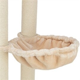 De Trixie Krabpaal Bertholo in crème met donkerbruin is een uitgebreide speel- en rustplek voor katten. Deze stevige krabpaal is bekleed met zachte pluche en voorzien van meerdere lig- en krabmogelijkheden. Binnenin bevindt zich een comfortabele schuilplaats met pluche/fleece bekleding. De ligplateaus zijn gevoerd, en de relaxmand is afgewerkt met een gewatteerde rand en zacht ligvlak. Het geïntegreerde sisal-krabvlak en de jute omwikkeling maken het plaatje compleet.