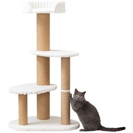 De Trixie Krabpaal Lonni in beige combineert comfort en functionaliteit in een stijlvol ontwerp. De krabpalen zijn omwikkeld met jute en voorzien van pluche met een brede corduroy-look. Het bovenste mandje heeft een bekleed ligplateau en een gevoerde rand voor extra ligcomfort.