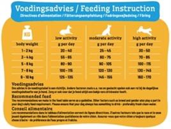 Kippenmeel (20%), mais, gerst, kippenvet (gestabiliseerd met natuurlijke tocoferolen), sorghum, verse kip (4%), lamsmeel (4%), rijst, bietenpulp, gehydroliseerd eiwit, MSC-gecertificeerde vismeel (2%)*, cellulose (1%) , biergist, MSC-gecertificeerde visolie (0,8%)*, cichorei (0,7%), vitamine en mineralen mix (bevat natriumhexametafosfaat 0,1%). *Uit een MSC gecertificeerde duurzame visserij.