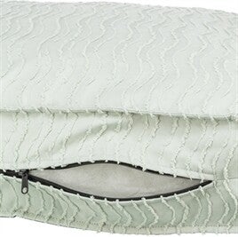 De Trixie Hondenkussen Marley Wave Saliegroen is een comfortabel ligkussen met een zachte katoenachtige uitstraling en een subtiel golvend patroon. De polyester bekleding en de vulling van polyestervlies zorgen voor een volle en aangename ligplek. Dankzij de extra hoge, omvangrijke vulling ligt je hond verhoogd, wat het opstaan kan vergemakkelijken. De afneembare bekleding maakt het onderhoud praktisch, terwijl de slipvaste onderkant helpt om het kussen op zijn plaats te houden.