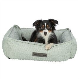 De Trixie Hondenmand Marley Wave Hoekig Saliegroen is een comfortabele ligplek met een zachte, katoenachtige uitstraling en een speels golvend patroon. De mand is voorzien van een polyester bekleding en een vulling van polyestervlies, wat zorgt voor een aangename plek waar je hond zich kan terugtrekken. Het geïntegreerde kussen blijft netjes op zijn plek, terwijl de afneembare bekleding het onderhoud vergemakkelijkt. Dankzij de slipvaste onderkant blijft de mand goed liggen, ook op gladdere vloeren.