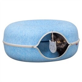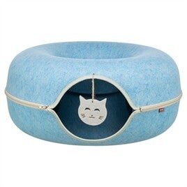 De Trixie Speeldonut Vilt Blauw is een veelzijdig kattenspeeltje dat spelen, verstoppen en rusten combineert in één ontwerp. De ronde donutvorm nodigt uit om doorheen te kruipen, terwijl de geïntegreerde ligplek ook een fijne plek biedt om tussendoor te ontspannen. Gemaakt van vilt en voorzien van een rits rondom, waardoor de donut volledig open te maken is voor flexibel gebruik en eenvoudig opbergen. De speelhanger aan een koord zorgt voor extra prikkels en stimuleert actief speelgedrag.