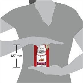 De Gourmet Mon Petit Duo Vlees is een complete natvoeding voor katten in kleine maaltijdzakjes van 50 gram, met per variant twee gecombineerde vleessmaken. Dankzij het handige formaat kan elke portie in één keer worden geserveerd, waardoor er geen restjes achterblijven. Deze Duo-variant combineert smaken zoals rund en kip, kalkoen en lever, en gevogelte en lam, wat zorgt voor variatie binnen het dagelijkse menu. De voeding bevat geen toegevoegde kunstmatige kleur- en smaakstoffen of conserveringsmiddelen.
