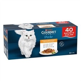De Gourmet Perle Mini Filets In Saus Multipack is een complete natvoeding voor katten met fijne stukjes vlees en vis in een rijke saus. Deze mix met kalkoen, eend, tonijn en lam zorgt voor variatie in de voerbak en speelt in op katten met een verfijnde smaak. Elke maaltijd is zorgvuldig samengesteld en bevat essentiële voedingsstoffen voor de dagelijkse voeding van je kat. De zachte mini filets in saus maken iedere portie aantrekkelijk om te serveren.